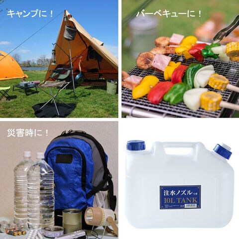 水 タンク ノズル付き 水缶 10L 2個セット P-10 | ポリタンク ウォータータンク ノズル付き 10L 10リットル アウトドア 2個セット 防災 災害 給水 持ち運び 断水 非常用