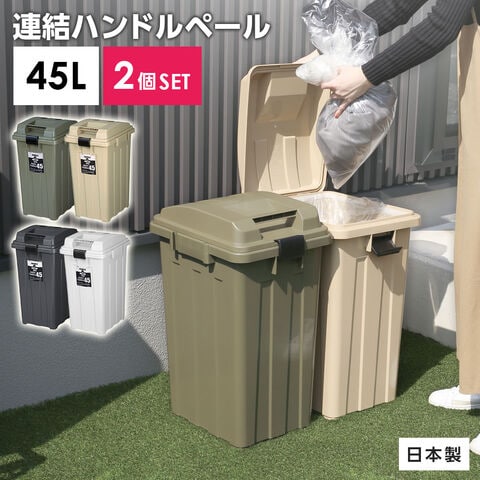 屋外ゴミ箱 連結ハンドルペール45 2個セット グリーン×2 | ごみ箱 おしゃれ 45L カーキ 白 ホワイト 黒 ブラック 分別 ハンドル ゴミ箱 45リットル 外置き ダストボックス