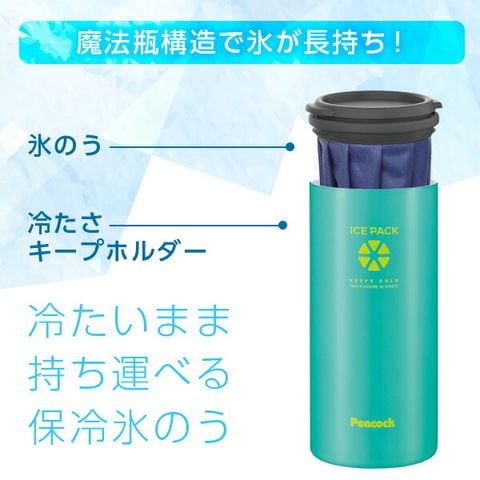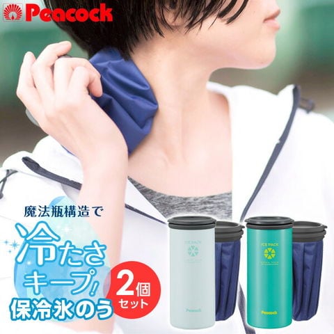 ピーコック 保冷氷のう アイスパック 2個セット アッシュホワイト / ブルーグリーン | 熱中症対策 携帯氷のう 保冷剤 暑さ対策 通勤 通学 アイスバッグ ステンレス スポーツ 氷嚢 おしゃれ 野球