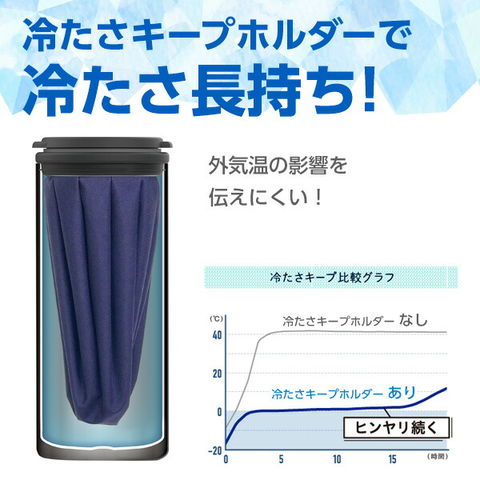 魔法瓶構造の冷たさキープホルダーに入れて持ち運べば、冷たさ長持ち。