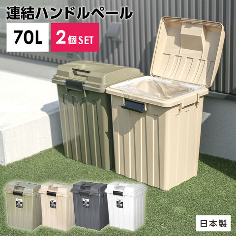 屋外ゴミ箱 連結ハンドルペール70 2個セット ベージュ×2 | ごみ箱 おしゃれ 70L 76L カーキ 白 ホワイト 黒 ブラック 分別 ハンドル ゴミ箱 70リットル 外置き ダストボックス