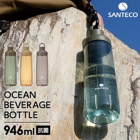 水筒 SANTECO オーシャンビバレッジボトル 946ml カーキ/ベージュ/グレー | ウォーターボトル クリアボトル おしゃれ トライタン メモリ付き アウトドア 抗菌 BPAフリー 軽量 1L 登山