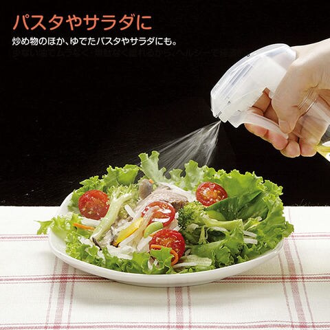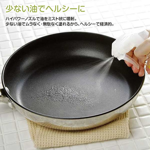 ハイパワーノズルで油をミスト状に噴射。1回のプッシュで約小さじ1/15杯分の油が出ます。