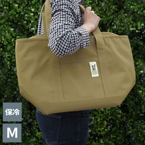 保冷バッグ BigBee クーラートートバッグ M サンドベージュ | マチ付き エコ ショッピング 大きめ 弁当 サブ ポケット付き シンプル おしゃれ アウトドア キャンプ ピクニック 運動会