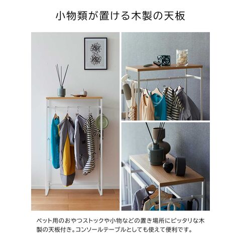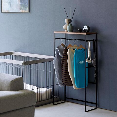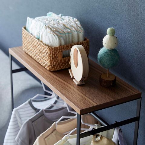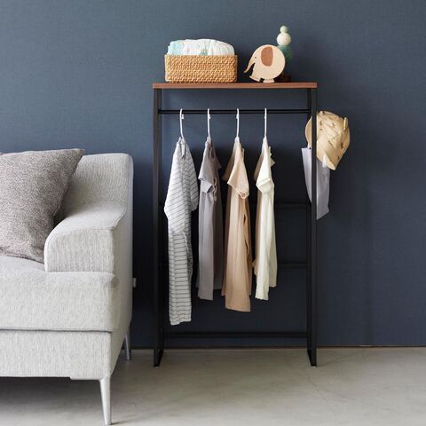 シンプルでお部屋になじむデザインなので、コンソールテーブルとして使ったり、小さくて収納に困るベビー服用のハンガーラックとしてもお使いいただけます。