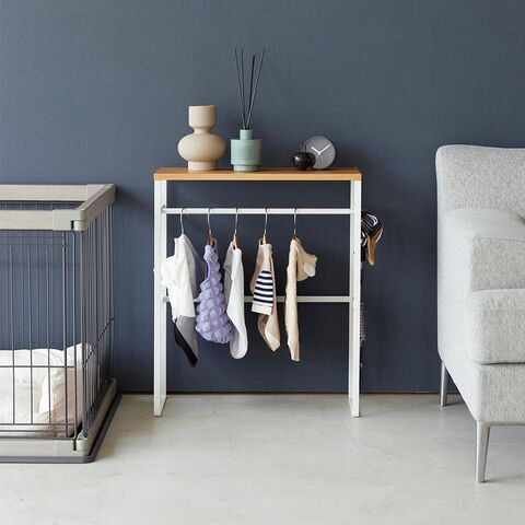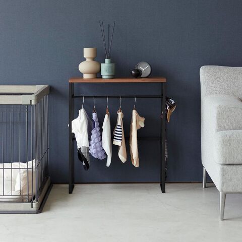 小物も置ける天板付きのハンガーラック。