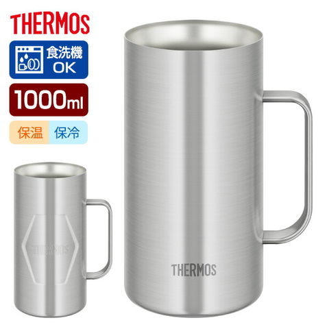 サーモス 真空断熱ジョッキ 1L JDK-1001 | THERMOS 保冷 ステンレス ビアジョッキ グラス コップ コールドドリンク 氷 溶けない 取っ手付き ぬるくならない 最後まで冷たい 保温