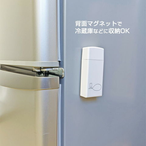 冷蔵庫などに取り付けて収納できる背面マグネット仕様です。