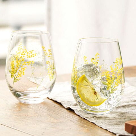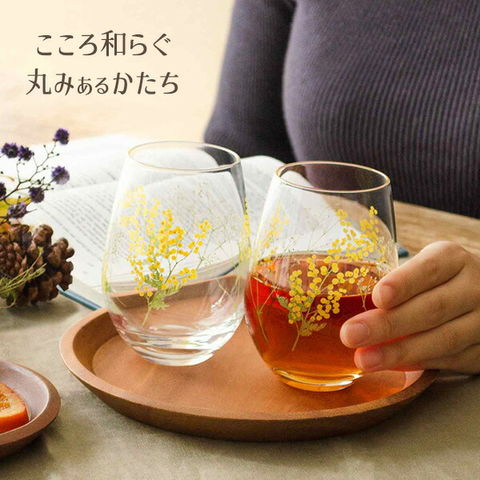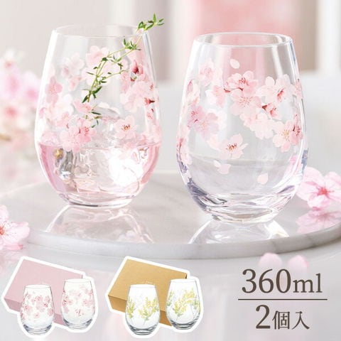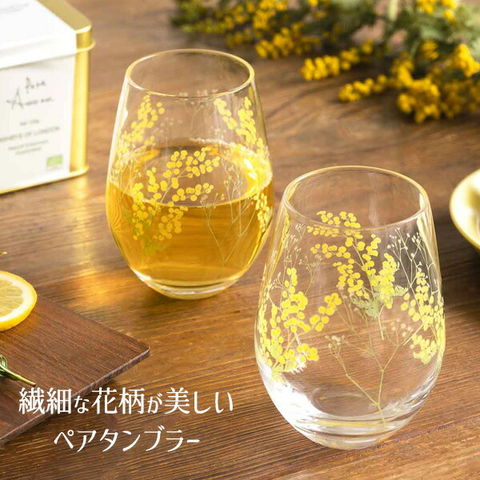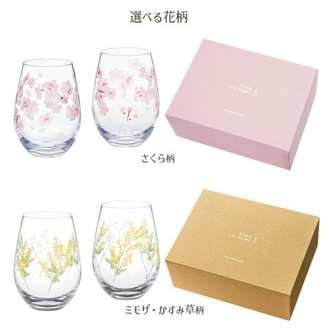ペアグラス 花文 hanafumi ペアタンブラー さくら柄 / ミモザ・かすみ草柄 | ガラス 硝子 2個組 コップ 花柄 日本製 贈り物 ギフト プレゼント お祝い お礼 2個入 容量360ml