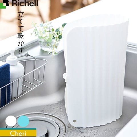 リッチェル シェリー 立てて乾かせるシリコーンシンクマット M ホワイト/ミントブルー | シンク マット シリコン 傷防止 キッチン 台所 流し 敷物 敷く 食器洗い