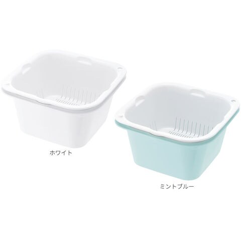 リッチェル 調理用ザル シェリー ザルバッとん 大盛 深 ホワイト/ミントブルー | 水切り バット スタッキング 料理 ざる 下ごしらえ 食材入れ ボウル ボール スクエア 角型 積み重ね 収納