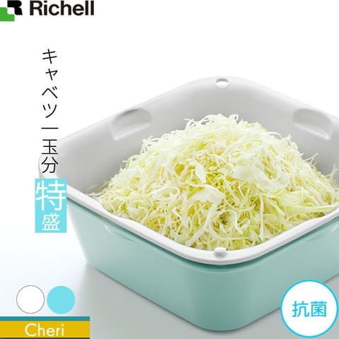 リッチェル 調理用ザル シェリー ザルバッとん 特盛 2セット組 ホワイト/ミントブルー | 水切り バット スタッキング 料理 ざる 下ごしらえ 食材入れ ボウル ボール スクエア 角型 積み重ね 収納