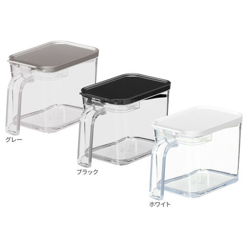 オシャレなモノトーンで、湿気に強いパッキン付きの調味料ポット。