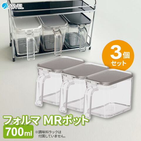 調味料ポット フォルマ MRポット(700ml) グレー×3個 A1108 | 調味料入れ キッチン収納 ポット 砂糖入れ シュガー 塩入れ ソルト キッチングッズ シンプル モノトーン ストッカー 小麦粉 片栗粉 だし 出汁 ダシ パン粉 使いやすい FORMA