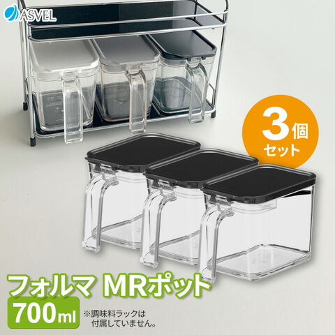 調味料ポット フォルマ MRポット(700ml) ブラック×3個 A1108 | 調味料入れ キッチン収納 ポット 砂糖入れ シュガー 塩入れ ソルト キッチングッズ シンプル モノトーン ストッカー 小麦粉 片栗粉 だし 出汁 ダシ パン粉 使いやすい FORMA