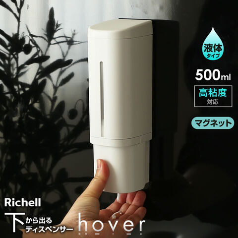 下から出る ディスペンサー hover(ホバー) リキッド 500ml マグネット ホワイト | シャンプーボトル 詰め替え 磁石 で付く シール 貼る 入れ替え 液体 ボトル 容器 ポンプ プッシュ ボタン 風呂 壁面 浮かせて 浴室 トリートメント リンス