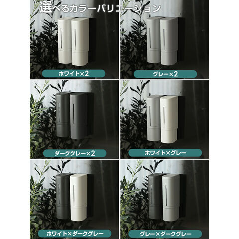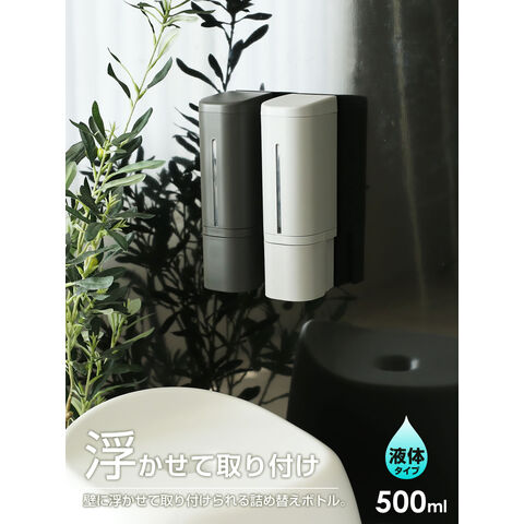下から出る ディスペンサー hover(ホバー) リキッド 2個セット 500ml マグネット ホワイト×グレー | シャンプーボトル 詰め替え 磁石 で付く シール 貼る 入れ替え 液体 ボトル 容器 ポンプ プッシュ ボタン 風呂 壁面 浮かせて 浴室 トリートメント リンス