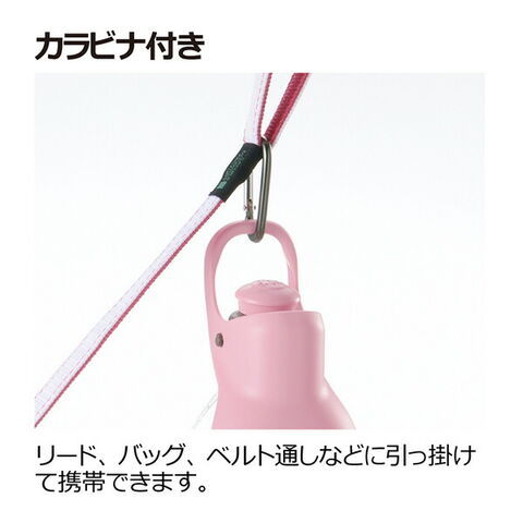 ハンドル部分にとりつけられる、カラビナ付きです。