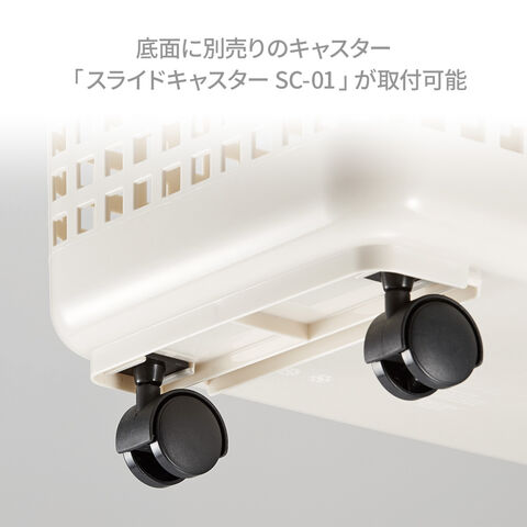 別売りのキャスターも付けられる底面に別売りのキャスター「スライドキャスター SC-01」が取付可能なので、バスケットの移動がよりスムーズに行えます。