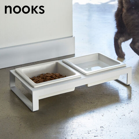 山崎実業 nooks ヌークス ペットフードボウルスタンドセット 高さ6cm ホワイト 4206 / ブラック 4207 | ペット エサ入れ 食器台 水飲み ツイン