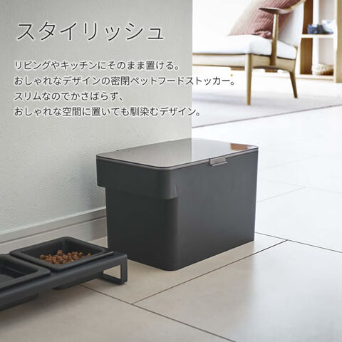 約3.5kg分のペットフードが入る容量。浅めサイズで圧迫感がなく、コンパクトに置けます。