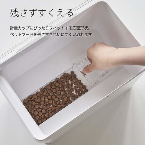 計量カップにぴったり沿う底面形状で、ペットフードをきれいにすくい取れます。