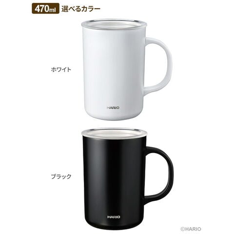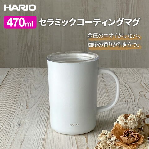 HARIO ハリオ セラミックコーティング 真空二重保温マグ 470ml CMG-470-W | マグカップ 保温 保冷 セラミックコート 真空断熱マグカップ 陶器調 口当たりがいい 金属臭がしない フタつき 蓋 温度長持ち コーヒー 紅茶 お茶 ティータイム 仕事 勉強 メモリつき 結露しない