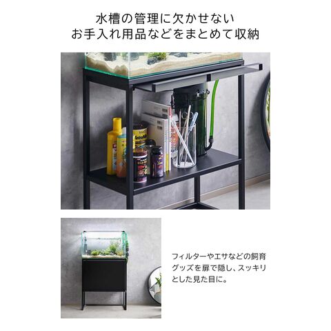 ラック下段は収納棚になっており、フィルターやエサなどの飼育グッズをまとめて収納できます。