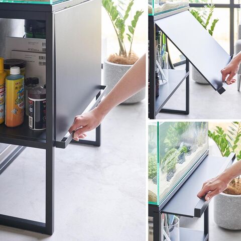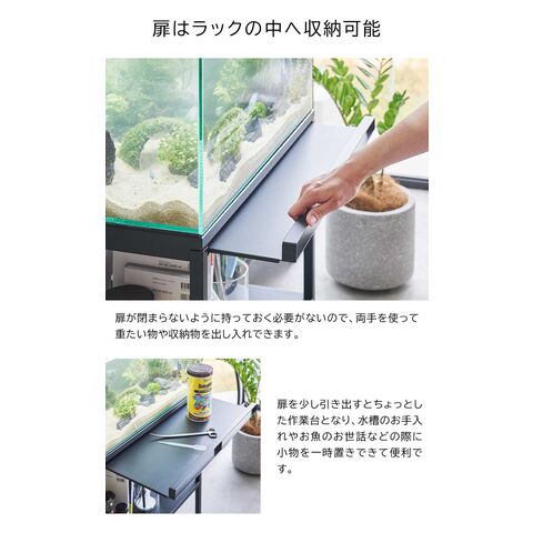 扉を少し引き出すとちょっとした作業台となり、水槽のお手入れやお魚のお世話などの際に小物を一時置きできて便利です。