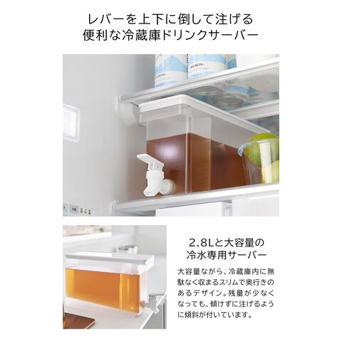 山崎実業 tower タワー 冷蔵庫ドリンクサーバー 2.8L ホワイト 1583 | 麦茶ポット お茶 ポット サーバー 冷水筒 冷蔵庫 棚置き 冷蔵庫の棚 入る 置く サーバー 蛇口付き シンプル おしゃれ 白 黒