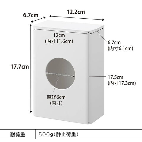 内寸サイズ:蓋開口部/W11.6×D6.1cm 取り出し口/直径6cm
