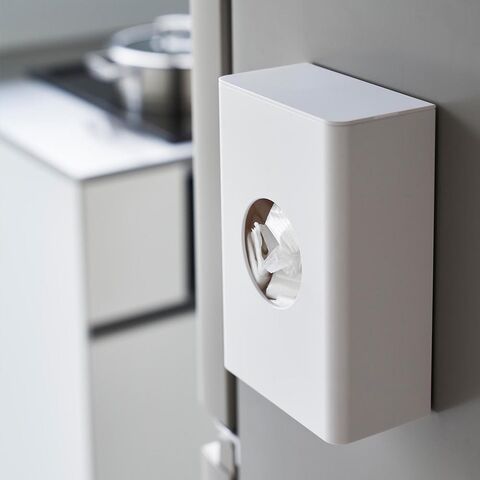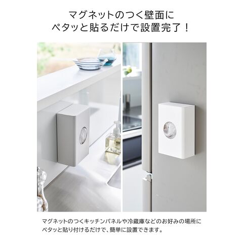 排水溝の水切りネットの交換時、すぐ手に届く場所に水切りネットがあるととても便利ですよね!こちらの商品は、マグネットのつくキッチンパネルや冷蔵庫などにペタッと貼り付けるだけで設置できる、水切りネットのストック用ホルダーです。