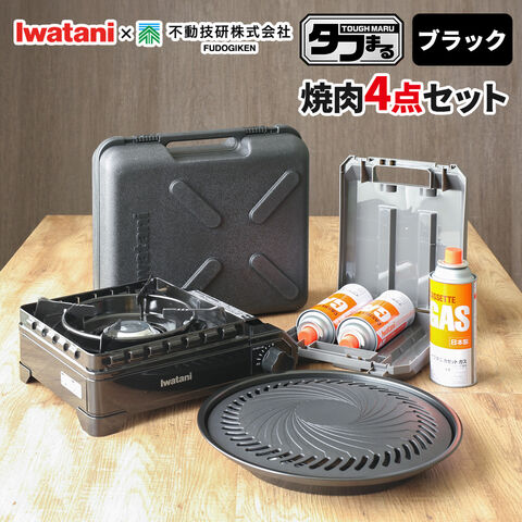 セット内容「イワタニ カセットフー タフまる」×1、「イワタニ 焼肉プレート」×1、「イワタニ カセットガス オレンジ 3本組」×1、「不動技研 カセットボンベ収納ケース」×1