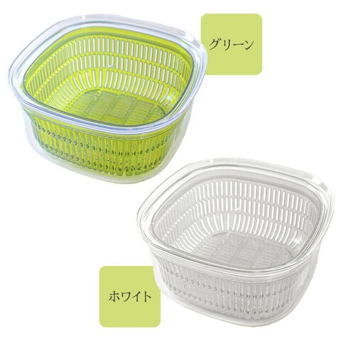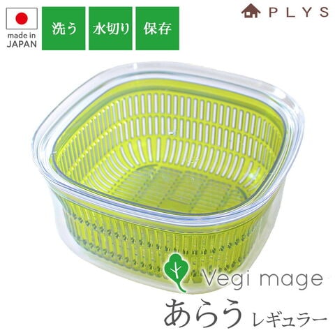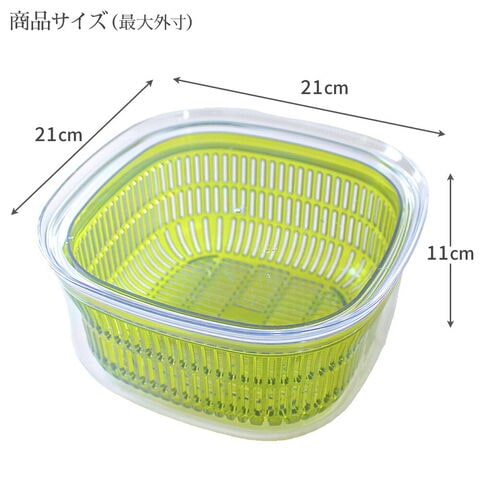 ザル付き 保存容器 プリス ベジマジ あらう レギュラー グリーン | 野菜 水切り 保存 ざる フタ付き ボウル サラダ 果物 あく抜き 灰汁k フルーツ 透明 クリア 割れない スタッキング