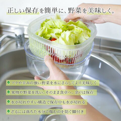 水が切れやすい構造で、保存中に野菜や果物から落ちる水分も切ります。