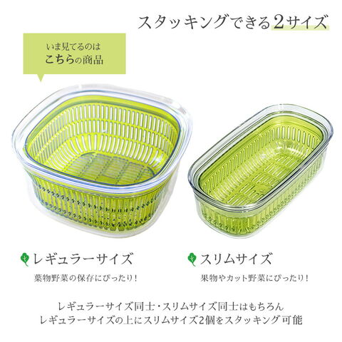 野菜や果物を洗って水を切りそのまま保存ができます。