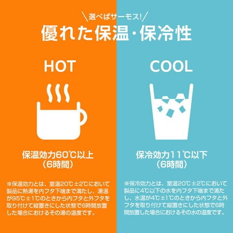 保温力ならやっぱりサーモスステンレス魔法びんと同じ高い保温・保冷力。寒い季節でも暑い季節でも、おいしい温度をキープ!