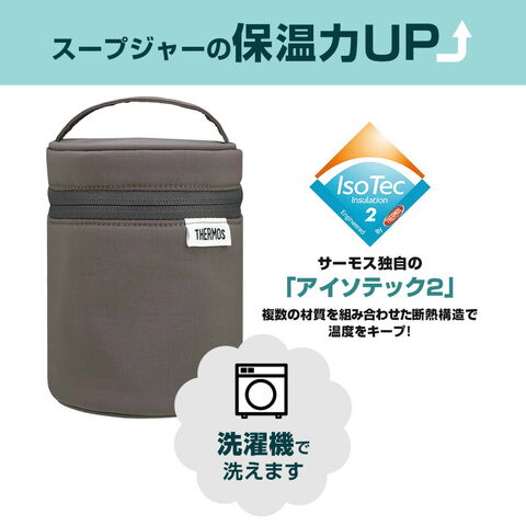 ポーチに入れるとスープがもっとあったかいアイソテック2断熱構造に複数の断熱材を組み合わせた厚手のフタで、スープジャーの保温力・保冷力がよりアップ。