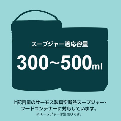 適応スープジャー容量0.3L以上~0.5L以下のサーモス製真空断熱スープジャーに対応しています。