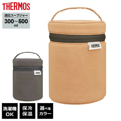 サーモス スープジャー ポーチ シナモンベージュ RET-003 | THERMOS スープジャー専用 保温カバー 300~500ml ランチ バッグ 洗濯可能 持ち運び フードコンテナ用 持ち歩き スープボトル ケース ポケット付き
