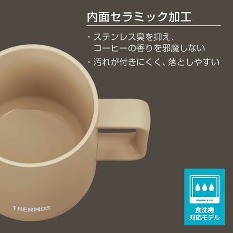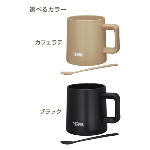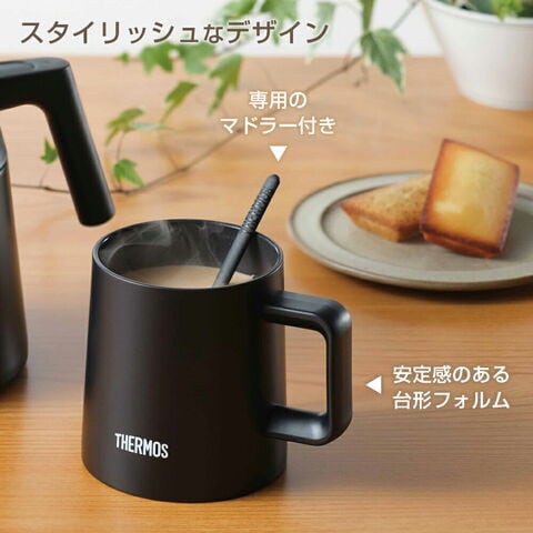 サーモス 真空断熱 マグカップ 350ml ブラック JDZ-350 | THERMOS コーヒーに最適 保温 保冷 マグ コーヒーマドラー付き おしゃれ ステンレス 食洗機対応 内面セラミック スプーン付 スープカップ 持ち手付き 冷めにくい