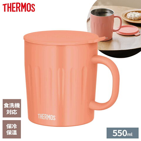 サーモス 真空断熱 マグカップ 550ml コーラルピンク JTA-550 | THERMOS 保温 マグ 大容量 保冷 食洗機対応 フタ付 蓋付き クラシック デザイン おしゃれ エンボス 縦ライン カフェオレカップ ホット コールド
