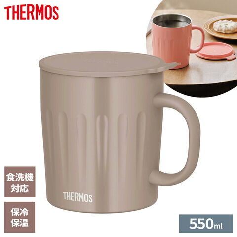 サーモス 真空断熱 マグカップ 550ml グレージュ JTA-550 | THERMOS 保温 マグ 大容量 保冷 食洗機対応 フタ付 蓋付き クラシック デザイン おしゃれ エンボス 縦ライン カフェオレカップ ホット コールド