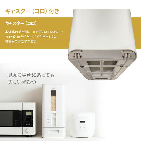 キャスター(コロ)付きお米を入れて重くなった容器もラクラク動かせます。