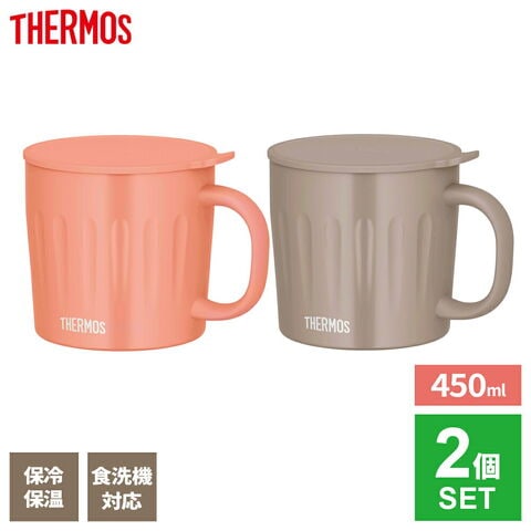 サーモス 真空断熱 マグカップ 2個セット 450ml JTA-450 | THERMOS 保温 マグ 大容量 保冷 食洗機対応 フタ付 蓋付き クラシック デザイン おしゃれ エンボス 縦ライン カフェオレカップ ホット コールド
