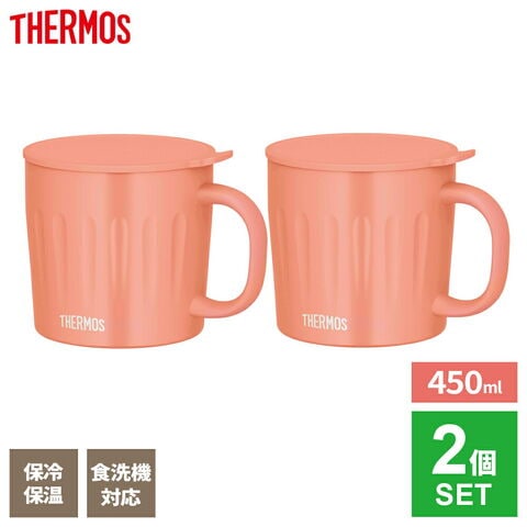 サーモス 真空断熱 マグカップ 2個セット 450ml JTA-450 | THERMOS 保温 マグ 大容量 保冷 食洗機対応 フタ付 蓋付き クラシック デザイン おしゃれ エンボス 縦ライン カフェオレカップ ホット コールド