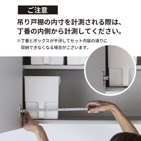 吊り戸棚にぴったりサイズ一般的な吊り戸棚1列にワイド1個・スリム3個が収まります。収納する際、扉の丁番に干渉せずゆとりのあるサイズ感です。