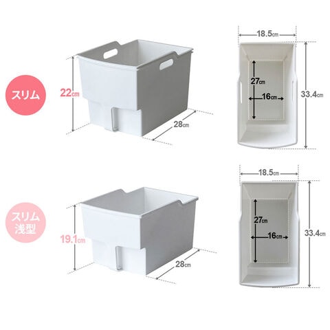 スペック1個あたりサイズ(約):ワイド/幅24×奥行33.4×高さ22cm スリム/幅18.5×奥行33.4×高さ22cm