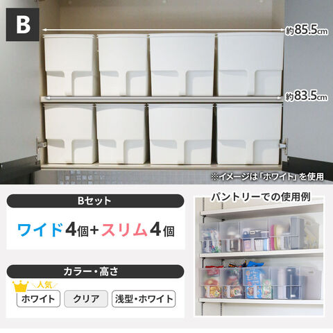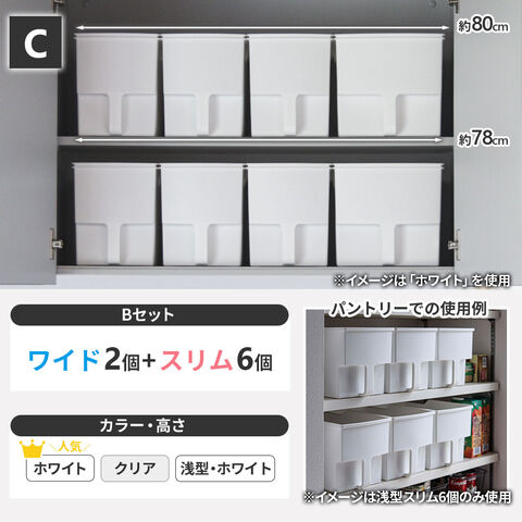 キッチン収納 吊り戸棚ボックス まとめ買いセット ワイド・スリム クリア 8個セット ( ワイド2個 + スリム6個 ) | 吊り戸棚収納ボックス 収納ケース ストッカー ボックス 取っ手付き 持ち手付き 吊戸棚 パントリー 整理ボックス 戸棚 収納 食器棚 台所収納 プラスチック