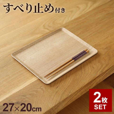 木製トレー ノンスリップ S(27×20cm) 2枚セット ナチュラル NC22-01 | お盆 滑らない トレイ おしゃれ 滑り止め ナチュラル カフェトレー 天然木 ランチョンマット すべらない 膳 おぼん 木目 すべり止め セットでお得 まとめ買い